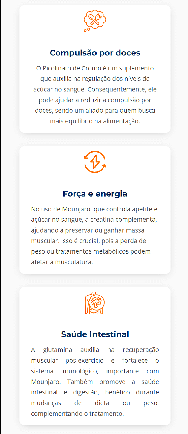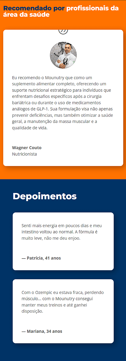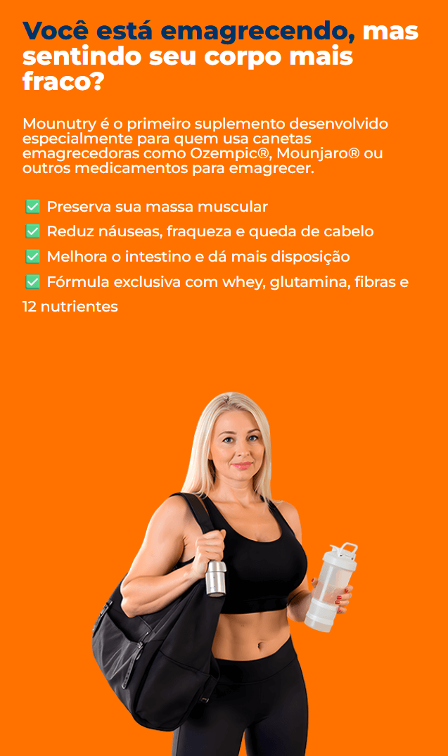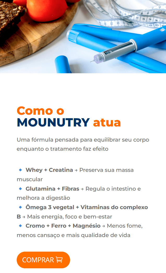Se você está em tratamento com análogos de GLP-1, como semaglutida ou tirzepatida (Ozempic®, Mounjaro®), já deve ter percebido que o processo de emagrecimento pode trazer alguns desafios. Sintomas como intestino preso, fadiga, perda de força, estagnação nos resultados e até aumento da vontade de comer doces são comuns nessa fase. Pensando nisso, a Pro Corps desenvolveu o Mounutry, o primeiro suplemento formulado especialmente para apoiar pacientes que utilizam esse tipo de medicamento.